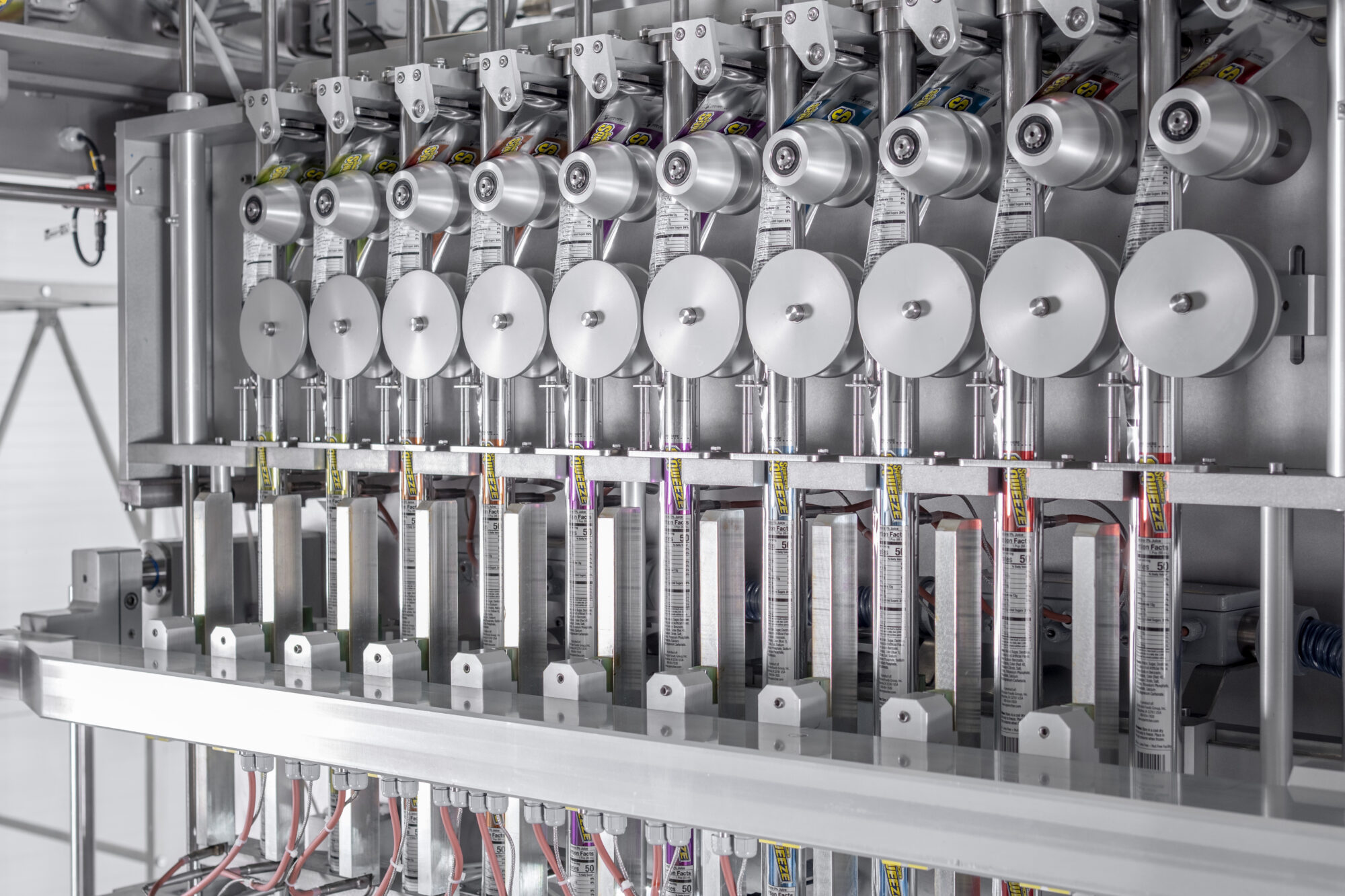 The ST1200 is designed for highly efficient packaging of long liquid sticks with excellent performance stability. Its robust construction ensures consistent results, and the liquid filler allows individual filling for each lane. Integrated date printing directly into the seal gives the sticks a professional and clean appearance. The flow wrapper then takes over the individual sticks and encloses them in an elegant final package. The entire packaging line delivers a premium, scalable, and highly reliable solution for modern production environments.
